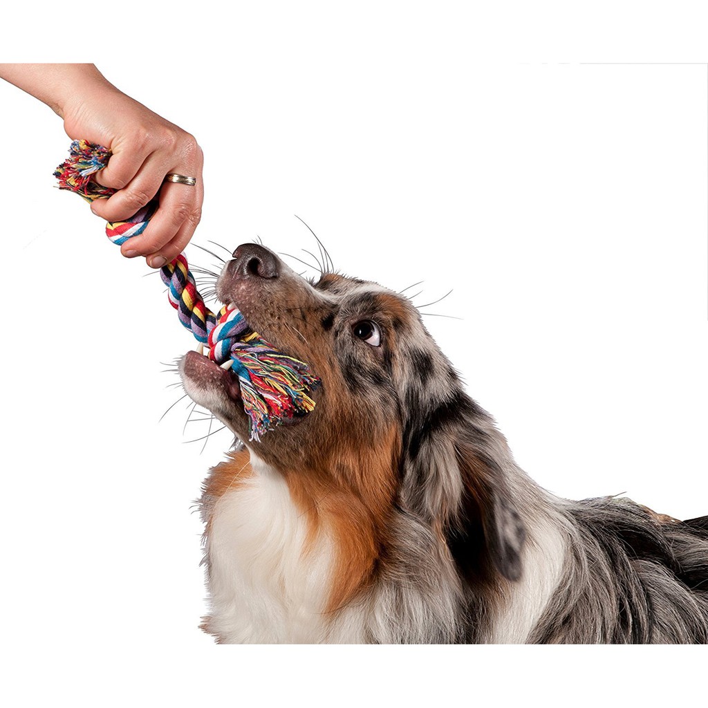 Giới thiệu Đồ chơi cho chó gặm bện dây thừng cotton giúp sạch răng 18-23cm - Bivido
