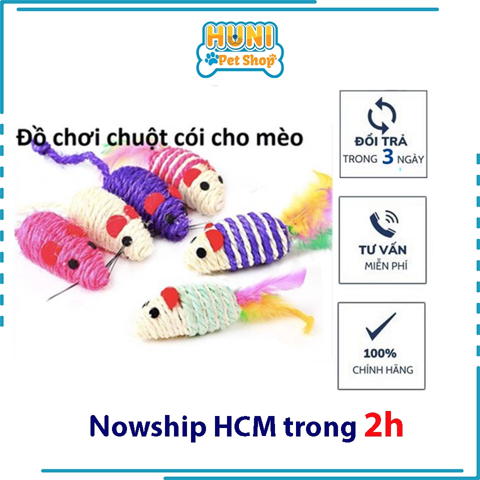 Đồ Chơi Cho Mèo Con Chuột Cói Có Đuôi Lông Cho Mèo Đồ chơi vờn bện cói dễ thương HUNI PETSHOP