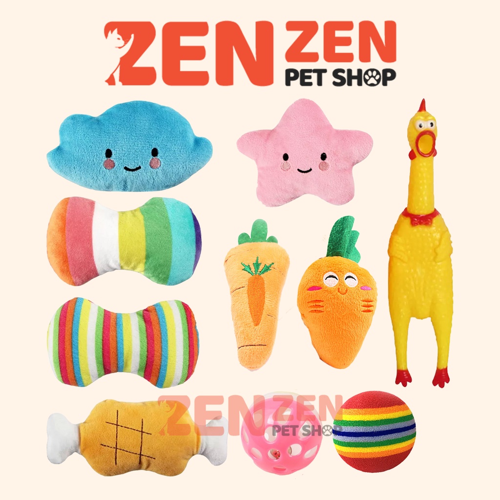 Giới thiệu Đồ chơi cho thú cưng - Gà chút chít, đồ chơi nhồi bông, bóng cầu vồng, bóng chuông