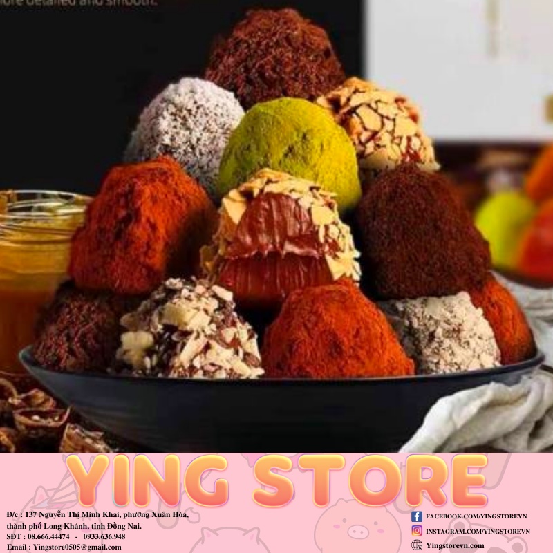 Chocolate Tươi Nama Truffle Hảo Hạng, 5 Vị Ngon Tuyệt, Hộp 185g ( ~ 80 Viên) ------------------------------------- **ĐẶC ĐIỂM NỔI BẬT SOCOLA TƯƠI NAMA TRUFFLE** ✔️ Tan chảy trong miệng, không bị quá đắng như socola hay cacao thông thường ✔️ 5 vị tươi mới hấp dẫn: Sôcola truyền thống, trứng sữa, chanh leo, matcha, việt quất ✔️ Thơm mềm ngon ngọt vừa rất tinh tế ✔️ Thưởng thức cùng tách trà thì tuyệt vời ✔️ Ngon hơn khi để ngăn mát tủ lạnh ✔️ Đóng gói kỹ càng, giá cả hợp lý ------------------------------------- **THÔNG TIN CHI TIẾT KẸO SOCOLA TƯƠI ◼️ An toàn cho người sử dụng ◼️ Bóc gói và sử dụng ngay ◼️ Khối lượng: Hộp 185g (~ 80 viên) ◼️ Hương vị: Socola, trứng sữa, trái cây, matcha, việt quất ◼️ Xuất xứ: Đài loan ( công nghệ Pháp )
