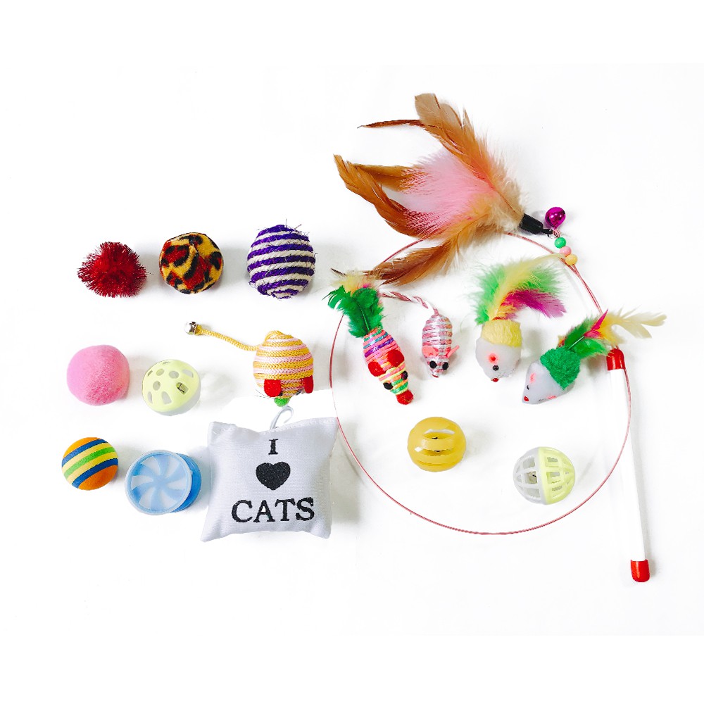 - Đồ chơi cho mèo 16 món phù hợp với những chú mèo tinh nghịch giúp chúng có thể chơi 1 mình cả ngày không chán, giảm stress cho mèo.