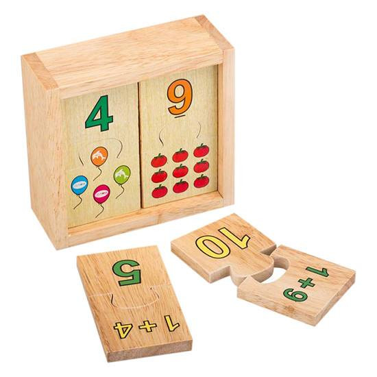 Bộ Ghép Số Học Đếm Bằng Gỗ sản phẩm được làm từ chất liệu gỗ tự nhiên, bề mặt nhẵn mịn, không góc cạnh, sản phẩm đảm bảo mang đến sự an toàn tuyệt đối cho bé khi sử dụng. Bộ học đếm và ghép 10 số gồm các con số từ 0 đến 9 được in trên bề mặt gỗ thông, tương ứng với mỗi con số là số lượng các loại trái cây khác nhau. Bé sẽ tìm đúng con số tương ứng với số lượng trái cây in trên miếng ghép để ghép lại với nhau. Tất cả các con số, trái cây trên mặt các thanh gỗ đều có những màu sắc sặc sỡ khác nhau giúp bé nhận diện màu sắc, giúp bé hình dung và nhận biết được hình dạng các loại trái cây mà bé vẫn ăn hàng ngày.