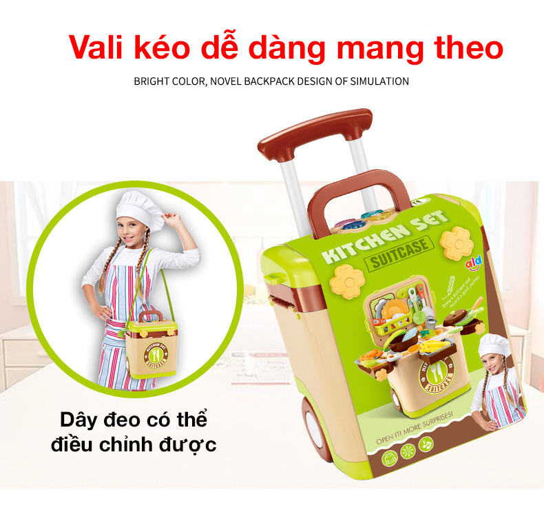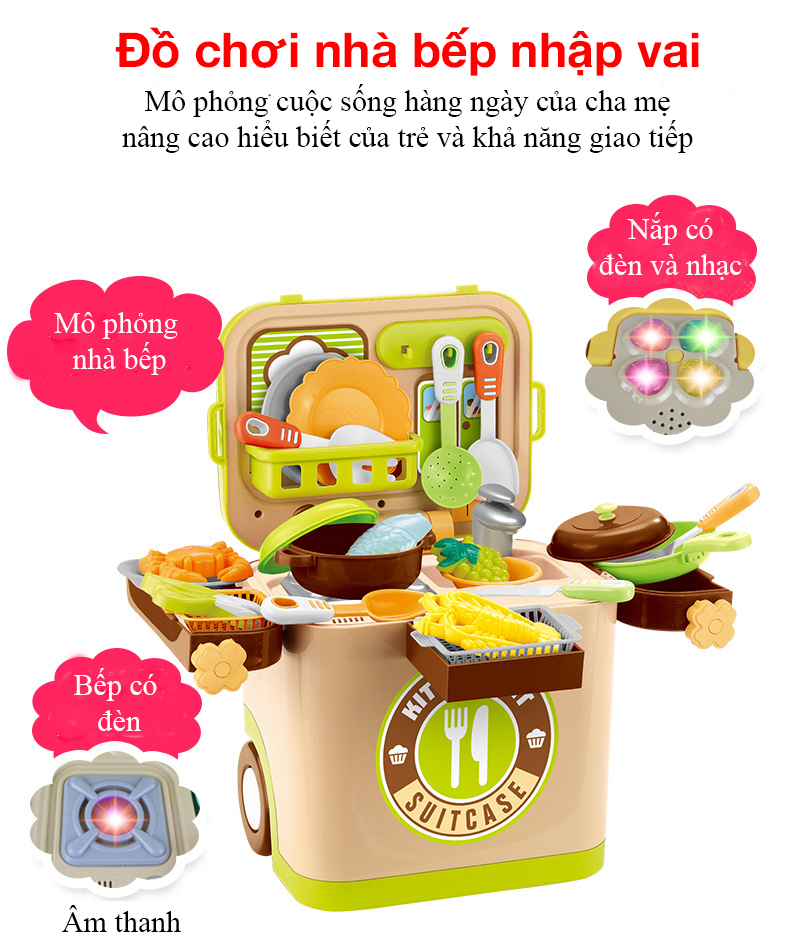 - Tên sản phẩm: Đồ chơ nhà bếp nấu ăn kèm vali đựng đồ