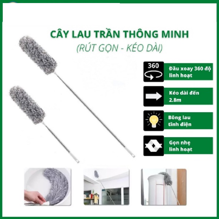Sử dụng ngay Chổi Quét Trần Nhà, Chổi Phất Trần Có Cán Điều Chỉnh Độ Dài giúp tiết kiệm tối đa thời gian và công sức của chị em phụ nữ.