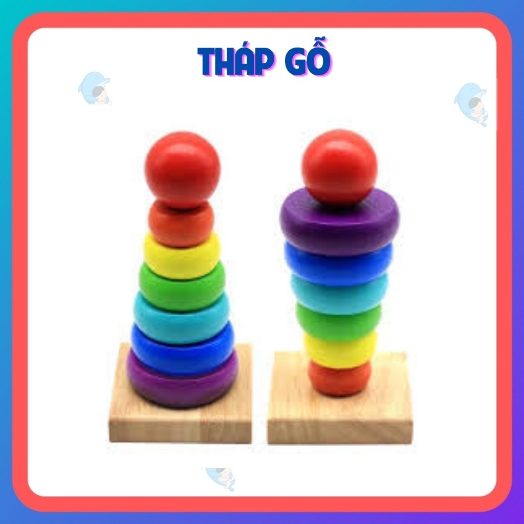 🌟 Bộ Đồ Chơi Tháp Gỗ 7 Sắc Cầu Vồng Cho Bé Nhận Biết Màu Sắc
