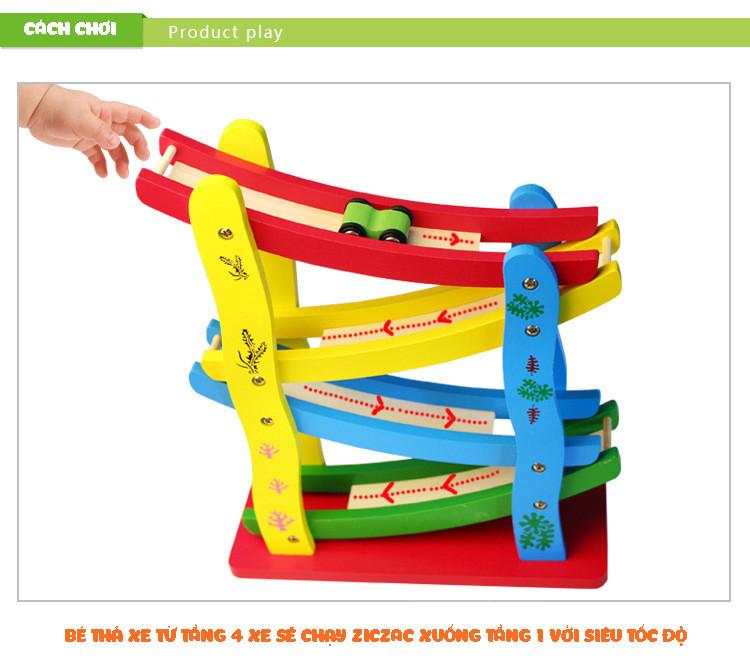 Một món đồ chơi giúp bé có thể trải nghiệm kỹ năng quan sát và tư duy logic ngay từ khi còn nhỏ sẽ là lựa chọn thông minh cho Bố Mẹ đang tìm mua cho bé.Còn gì thú vị hơn khi bé được thấy 4 chiếc xe lần lượt chạy ziczac từ tầng cao xuống tầng thấp với tốc độ cao và âm thanh lách cách vui nhộn, bộ đồ chơi khiến hầu hết các bé bị thu hút ngay lần đầu tiên nhìn thấy,hãy cùng chúng tôi khám phá Bộ Đồ Chơi Xe Cầu Trượt 4 Tầng Bằng Gỗ