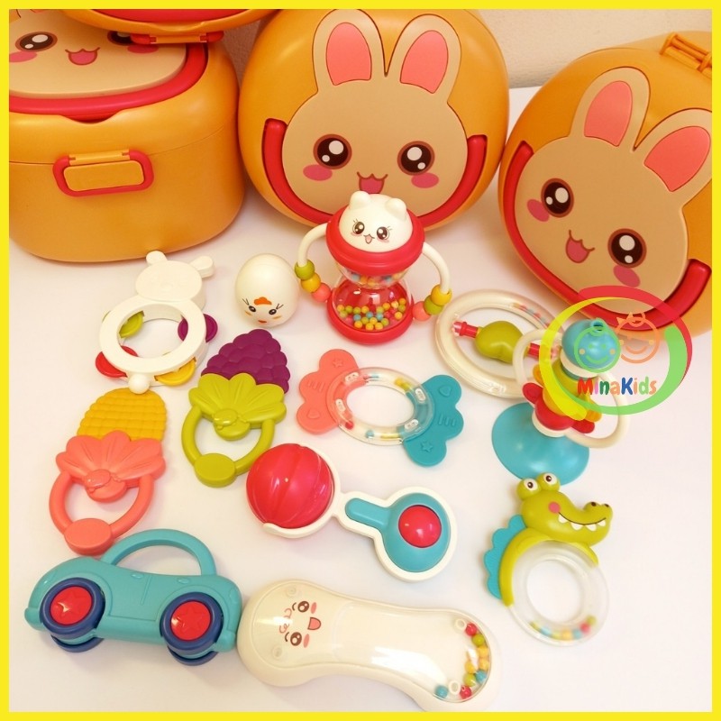 😍Bộ Xúc Xắc Gặm Nướu Cho Bé Nhựa ABS An Toàn 10,12 Món Hộp Hình Thỏ Dễ Thương XX22