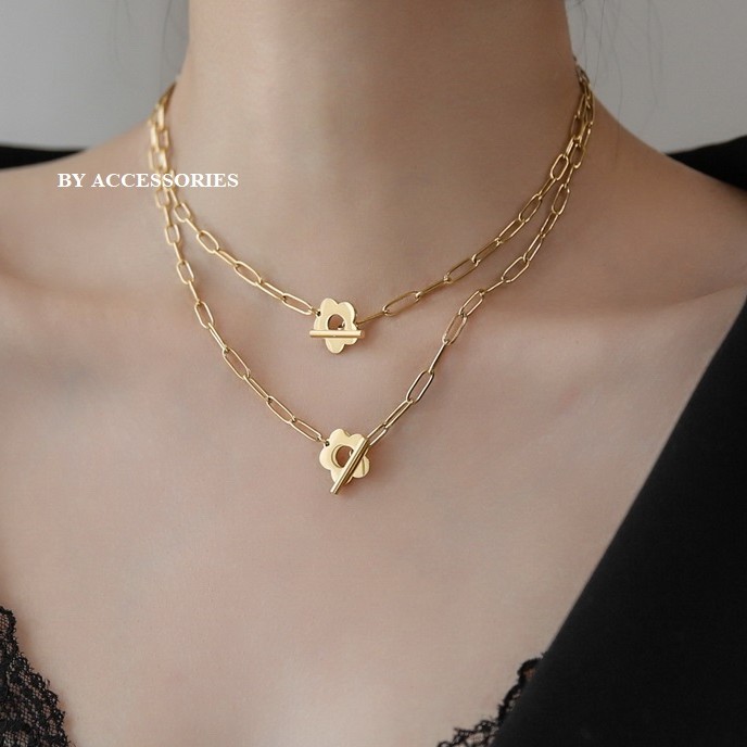 Giới thiệu Choker titan xích chữ nhật phối khóa bông hoa không gỉ