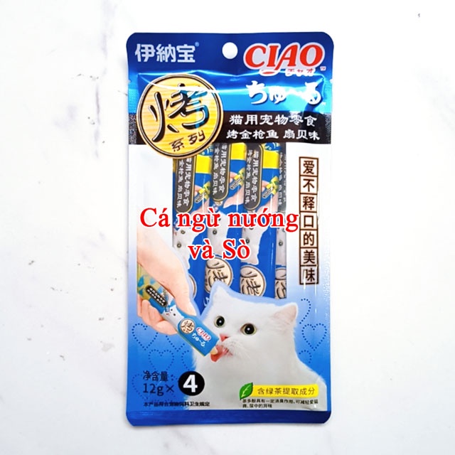 Soup thưởng Ciao hay còn gọi là Pate Ciao cho mèo Đóng gói: 1 gói 4 thanh x 14g (vị cá ngừ nướng thanh 12g) Chiếc mèo nhà bạn đang gặp những vấn đề như kén ăn, lông xơ xác, miệng hôi, thiếu chất, béo phì, lười uống nước? Soup Ciao có tác dụng hỗ trợ xử lí các vấn đề kể trên, cụ thể là: ✅ Kích thích sự thèm ăn ✅ Dạng soup dễ tiêu hóa và hấp thụ, bổ sung nước giúp hạn chế các bệnh sỏi thận, tiết niệu… ✅ Giàu taurine và các chất dinh dưỡng khác giúp chiếc mèo mắt sáng hơn, lông bóng mượt hơn. ✅ Sản phẩm chứa nhiều chất dinh dưỡng và các chất vi lượng giúp xương chắc khỏe, tăng sức đề kháng ✅ Công thức chế biến ít chất béo giúp mèo duy trì cơ thể lý tưởng, tránh béo phì
