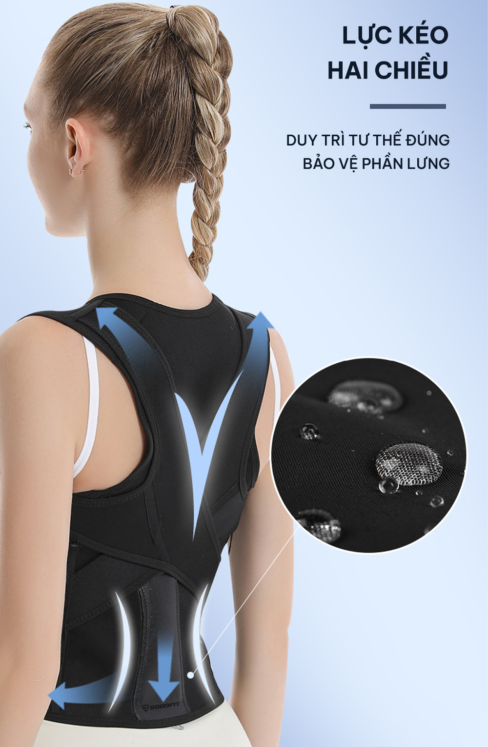 Đai chống gù lưng chính hãng GoodFit là sản phẩm chất lượng cao. Thiết kế tác động đa chiều tới lưng, eo, giúp kéo vai về phía sau và giữ cột sống thẳng, ngăn chặn tình trạng gù lưng. Do hỗ trợ đồng thời nên hiệu quả điều chỉnh sẽ cao hơn. Sản phẩm được thiết kế phù hợp cho người Việt Nam có size từ trẻ em đến người lớn.