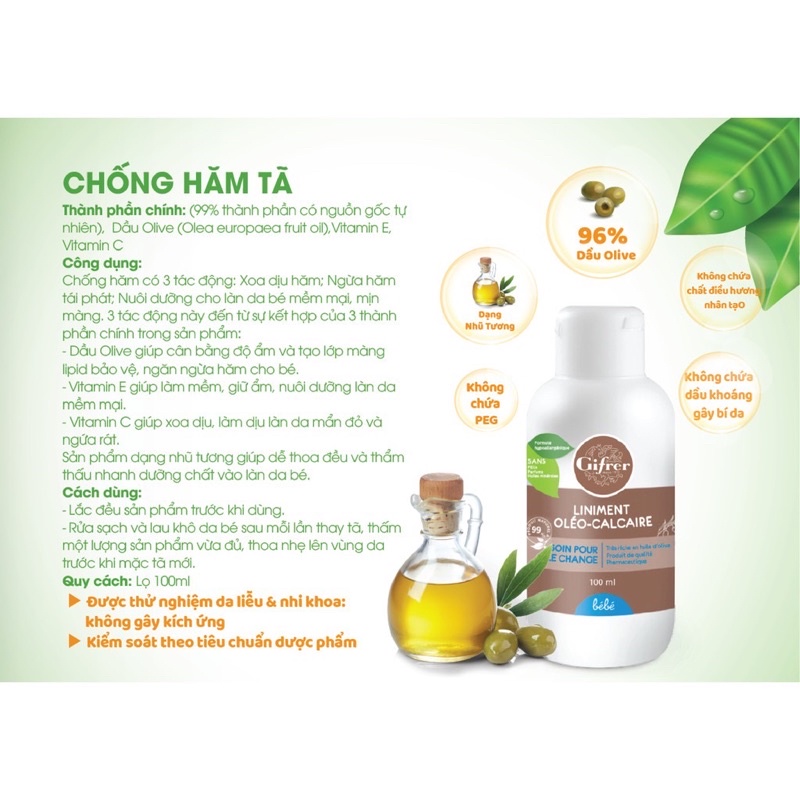 II. Công dụng: - Chống hăm có 3 tác động: Xoa dịu hăm, ngừa hăm tái phát - Nuôi dưỡng cho làn da bé mềm mại, mịn màng. - 3 tác động này đến từ sự kết hợp của 3 thành phần chính trong sản phẩm: + Dầu Olive giúp cân bằng độ ẩm và tạo lớp màng lipid bảo vệ, ngăn ngừa hăm cho bé. + Vitamin E giúp làm mềm, giữ ẩm, nuôi dưỡng làn da mềm mại. + Vitamin C giúp xoa dịu, làm dịu làn da mẩn đỏ và ngứa rát.Sản phẩm dạng nhũ tương giúp dễ thoa đều và thẩm thấu nhanh dưỡng chất vào làn da bé.