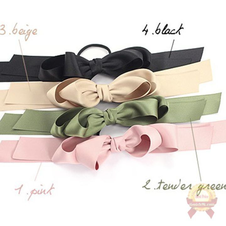 Giới thiệu Chun buộc tóc ruy băng vải Lụa hình nơ dài bản to Cao Cấp Hàn Quốc đơn sắc