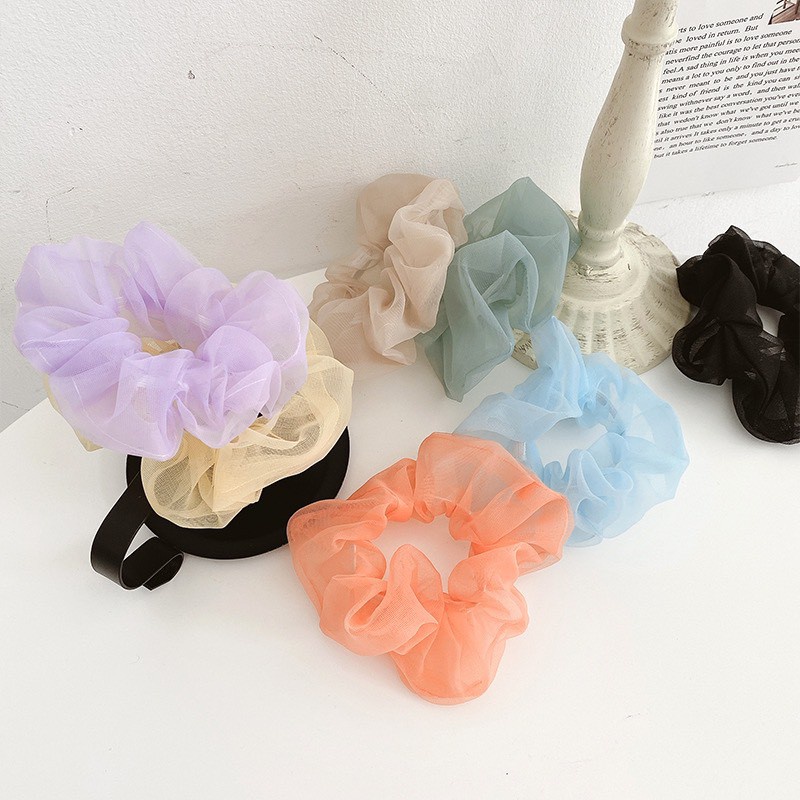 Phụ Kiện Thời Trang > Phụ kiện tóc > Đồ buộc tóc & Nơ || Chun Tóc Nữ ❤️FREESHIP❤️ Dây Buộc Tóc Nữ Phối Vải Lưới màu trơn điệu đà phong cách Hàn Quốc xinh xắn cho nữ mã L11B-1