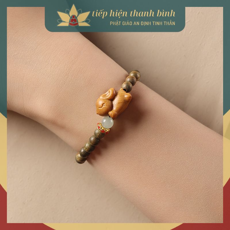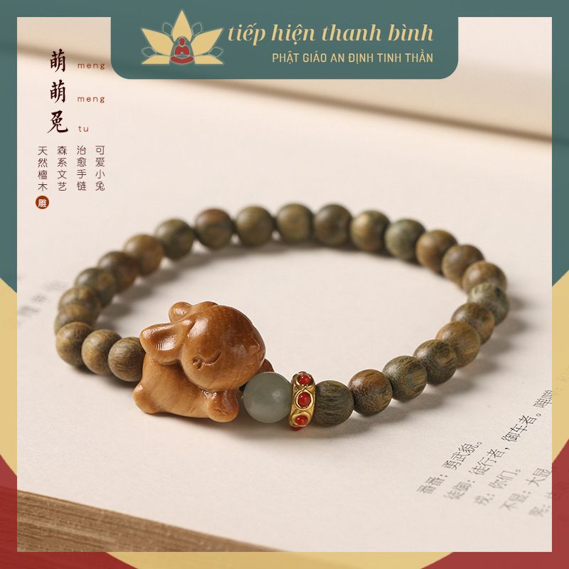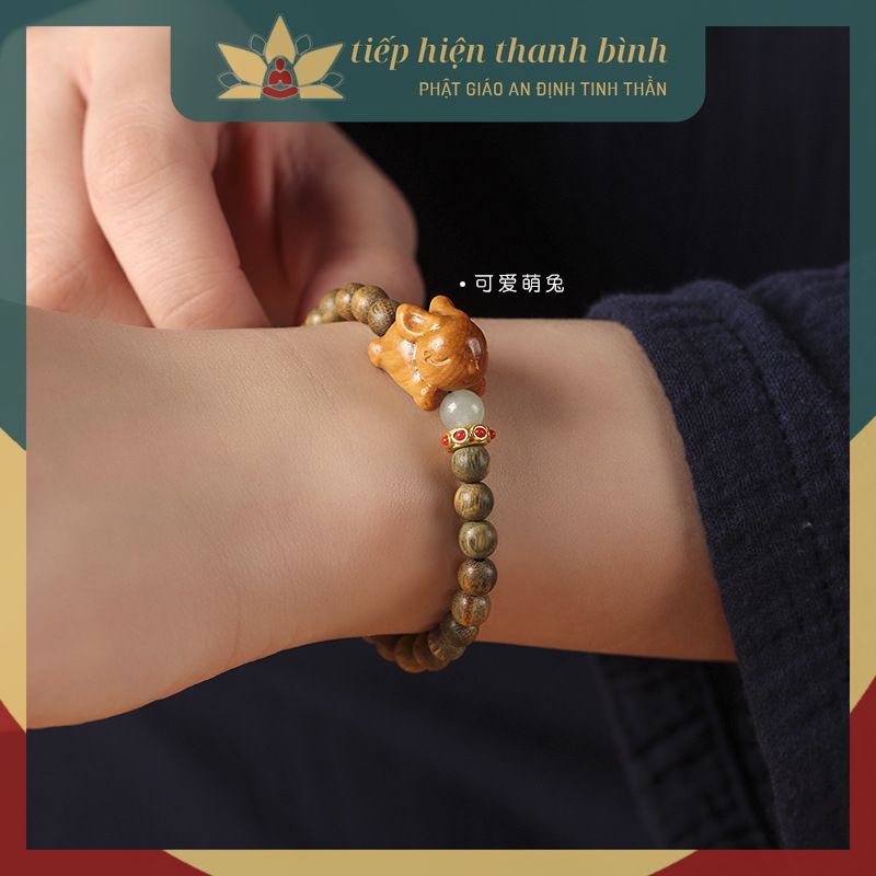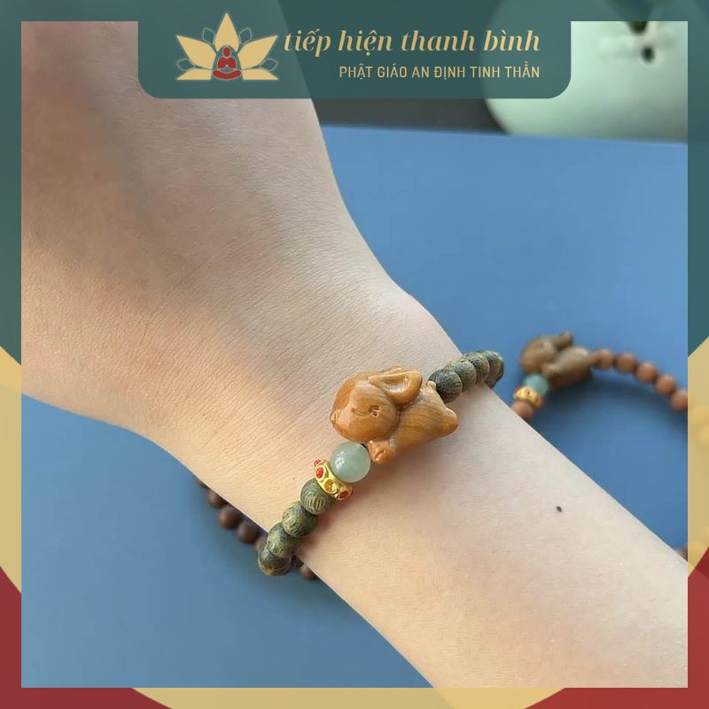 Điểm sáng của chuỗi nằm ở bé thỏ ngọc gỗ nằm cạnh viên ngọc bích rất xinh xắn, tạo điểm nhấn cho người đeo.