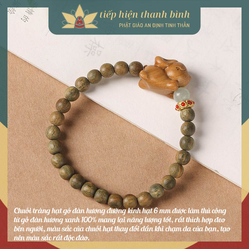 Chuỗi tràng hạt gỗ đàn hương đường kính hạt 6 mm được làm thủ công từ gỗ đàn hương xanh 100% mang lại năng lượng tốt, rất thích hợp đeo bên người, màu sắc của chuỗi hạt thay đổi dần khi chạm da của bạn, tạo nên màu sắc rất độc đáo.