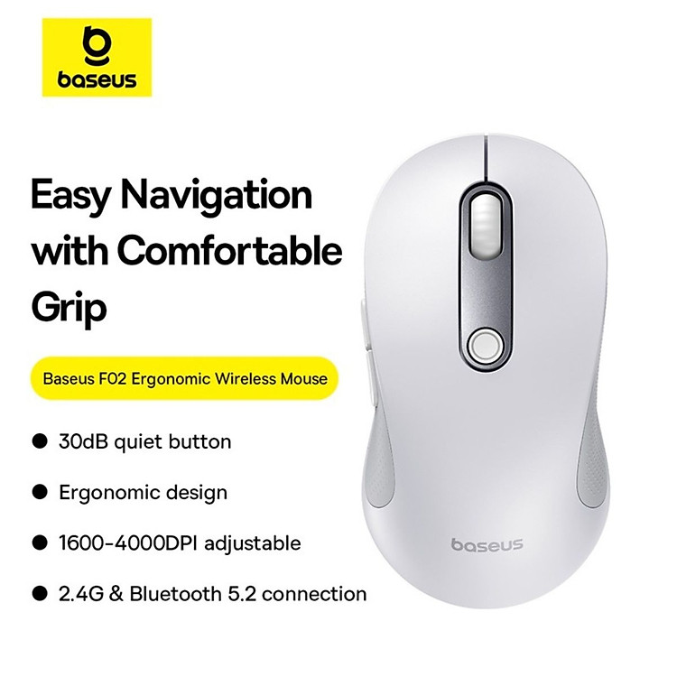 Chuột Baseus F02 Ergonomic Wireless Mouse không dây kết nối Bluetooth- Hàng Chính Hãng là một lựa chọn xuất sắc cho người dùng muốn sự thuận tiện và linh hoạt trong việc sử dụng chuột mà không cần dây. Dưới đây là một số điểm nổi bật của sản phẩm này: