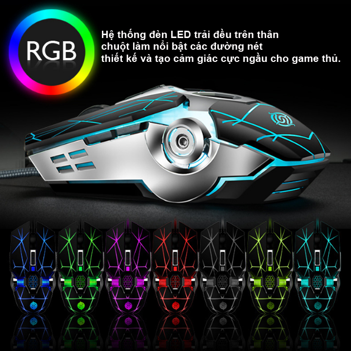 Thiết kế kiểu dáng Cảm nhận đầu tiên của chuột chơi game K-SNAKE Q7 là nước sơn sáng bóng; kiểu dáng đẹp vô cùng ấn tượng Hệ thống đèn LED trải đều trên thân chuột làm nổi bật các đường nét thiết kế và tạo cảm giác cực ngầu cho game thủ.