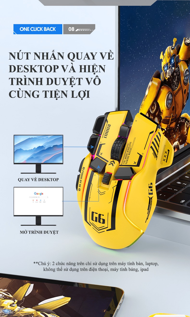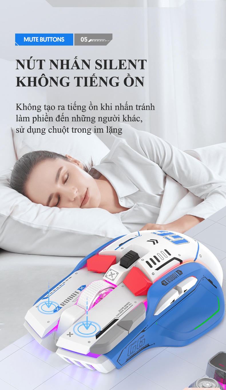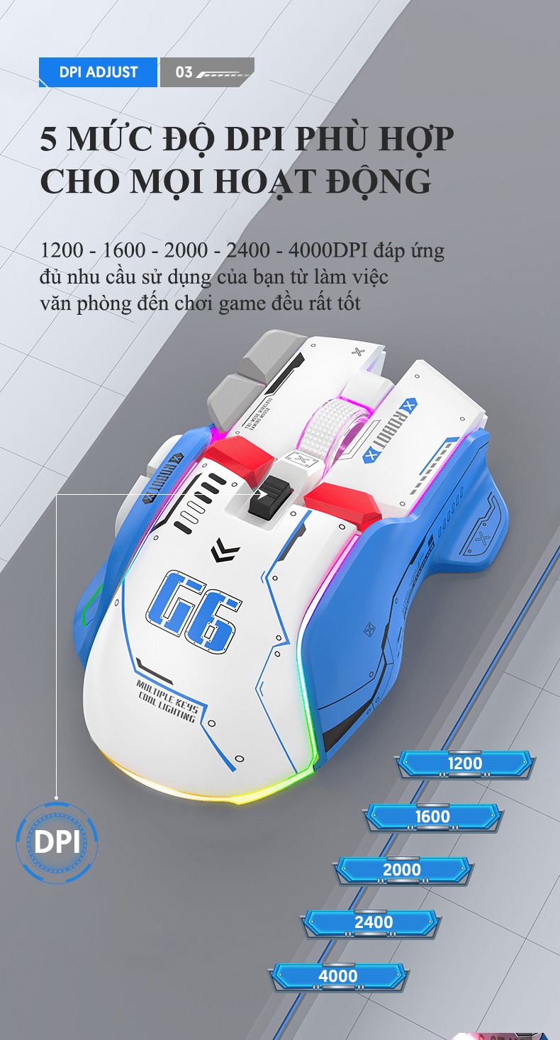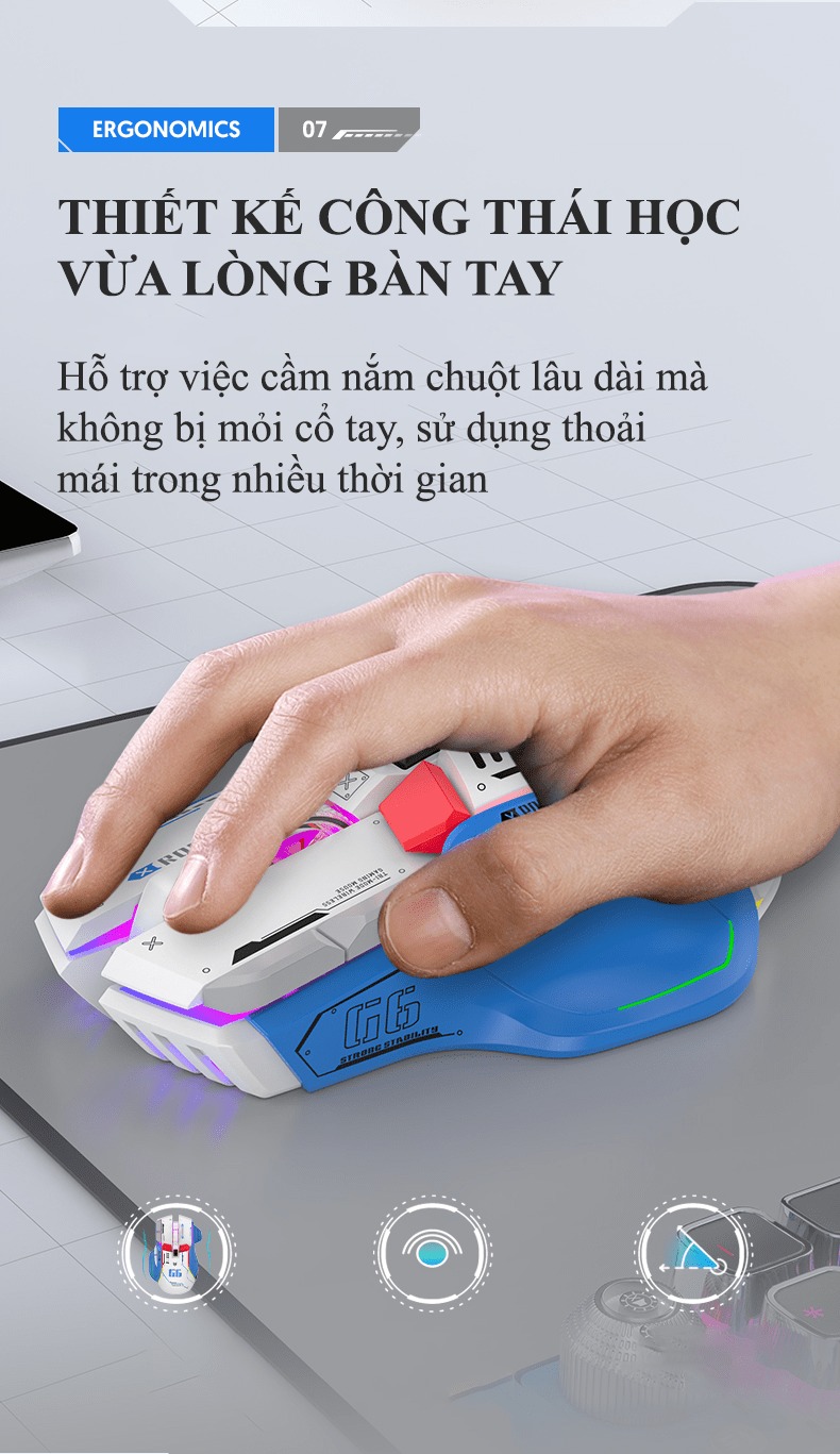 Giới thiệu Chuột không dây G6SBT kết nối 3 chế độ với kiểu dáng robot mới lạ kèm theo 11 chế độ led RGB cực đẹp - VL