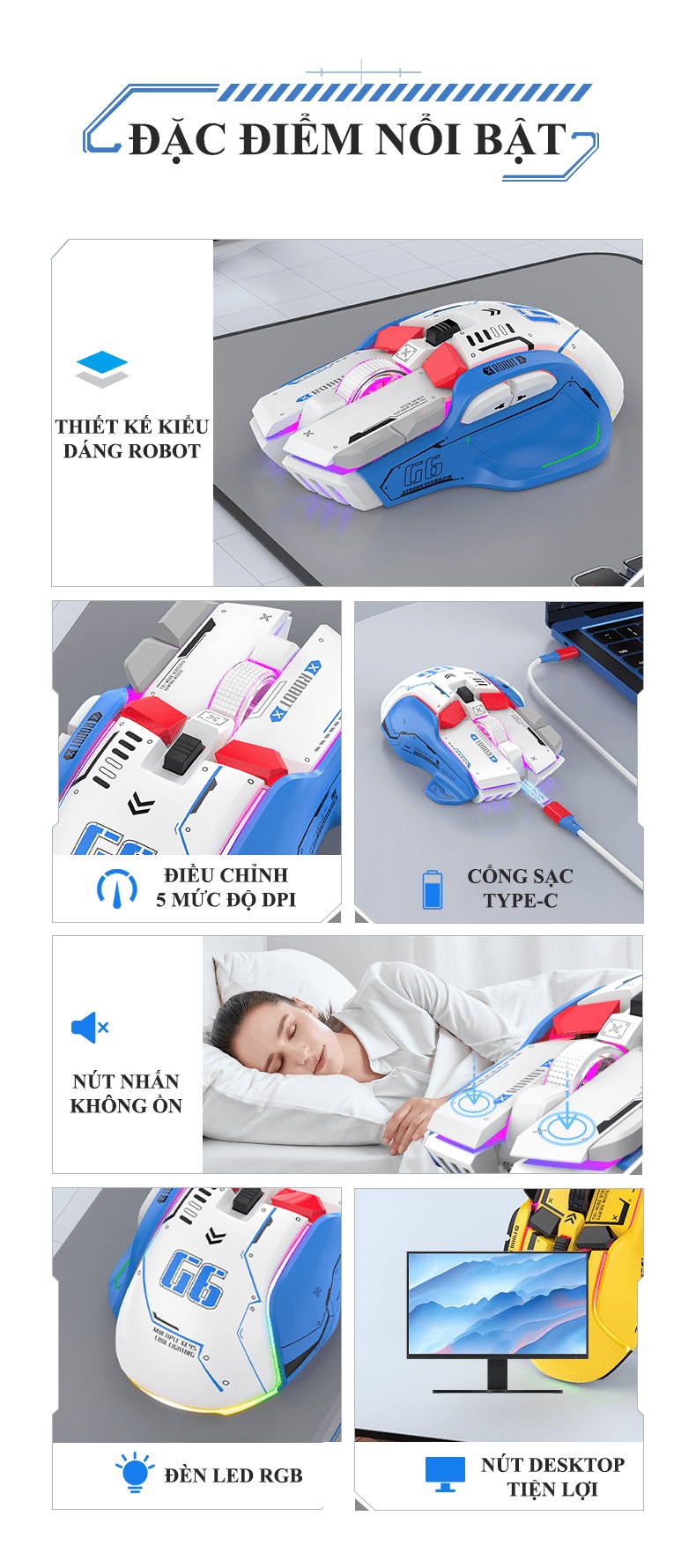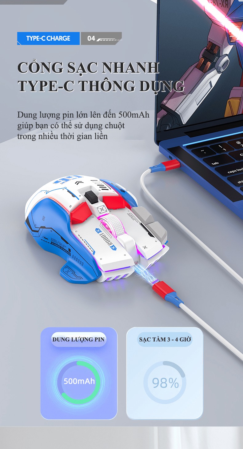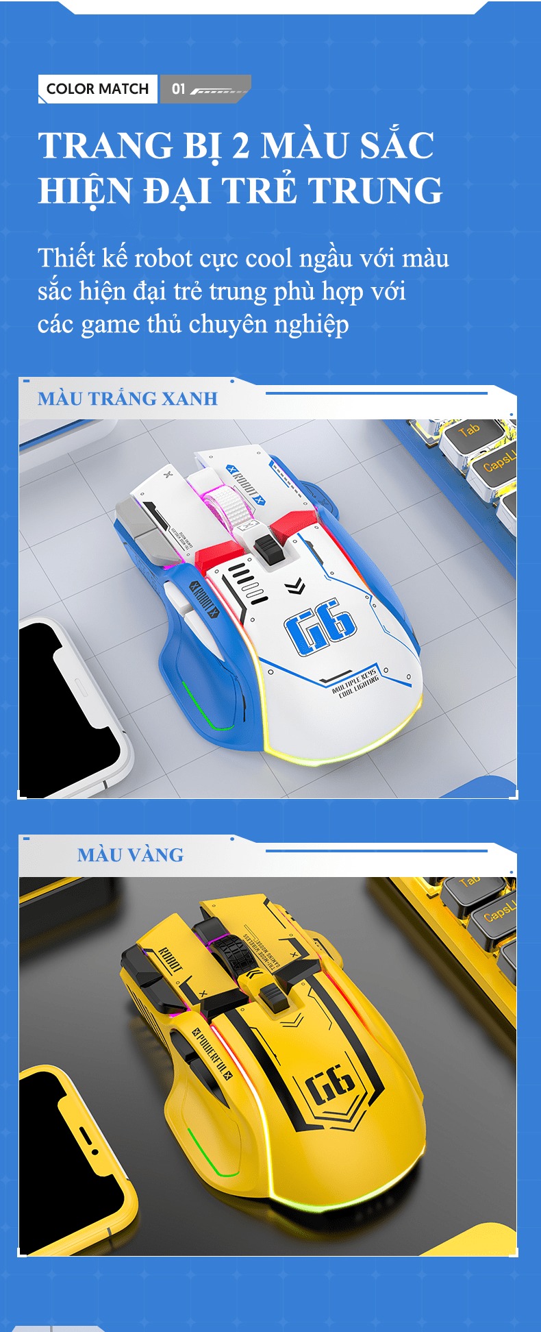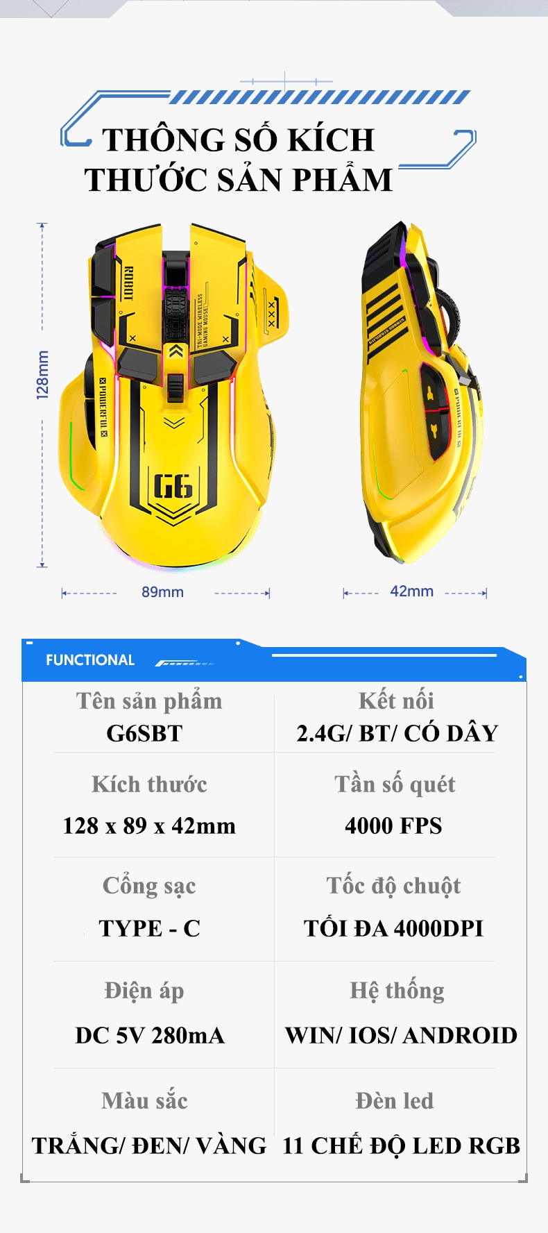 Giới thiệu Chuột không dây G6SBT kết nối 3 chế độ với kiểu dáng robot mới lạ kèm theo 11 chế độ led RGB cực đẹp - VL