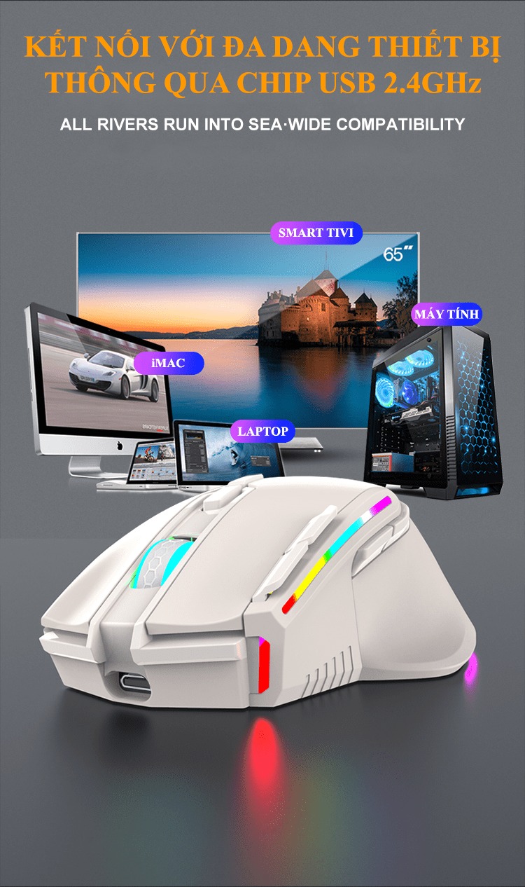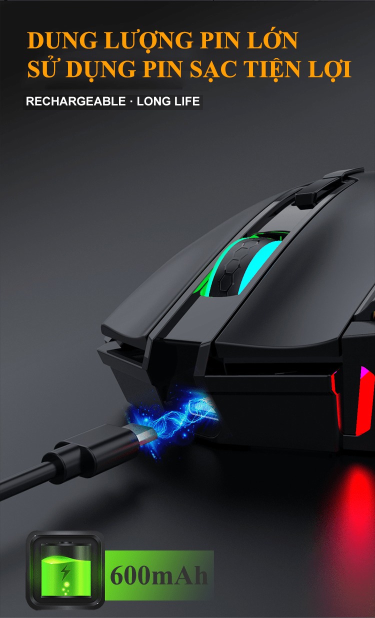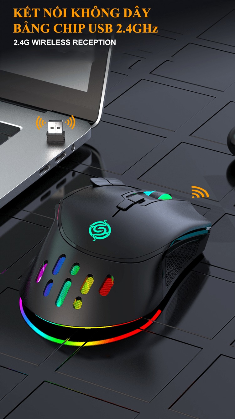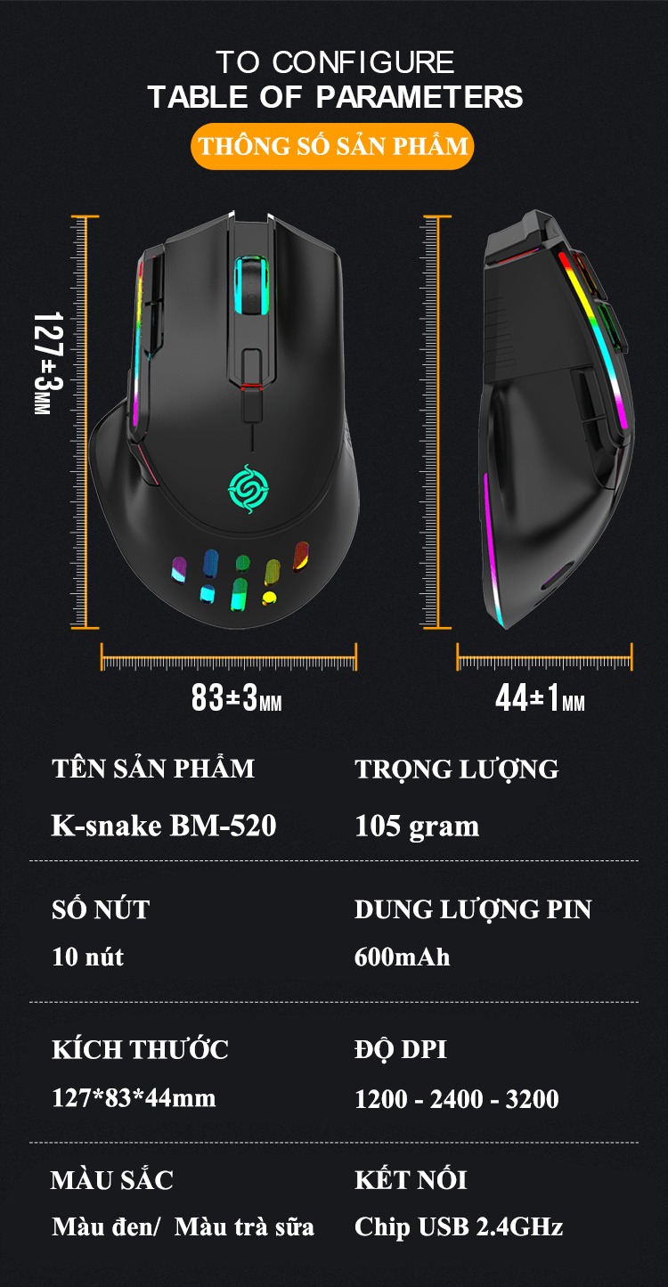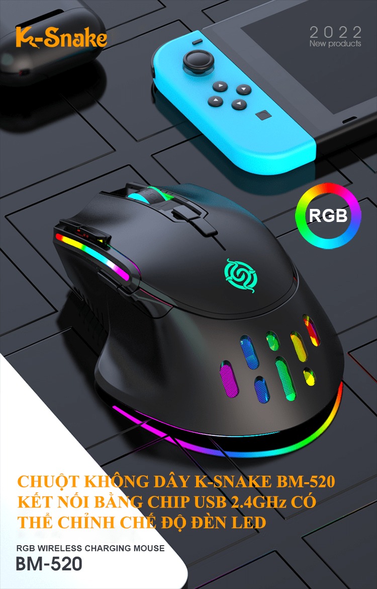 Giới thiệu Chuột không dây K-snake BM-520 kết nối bằng chip USB 2.4GHz có led RGB nhiều chế độ màu và độ DPI lên đến 3200DPI