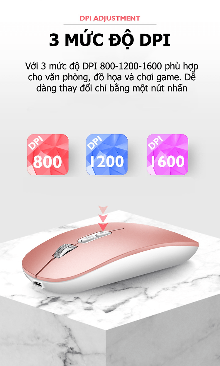 -3 Chế độ DPI: 600 – 1200 – 1600 DPI