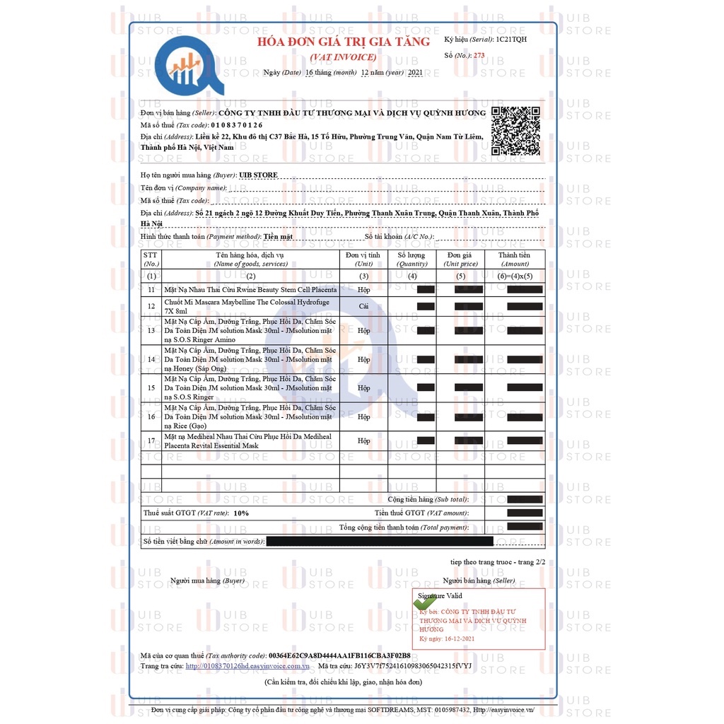 Đơn vị bán hàng : Công ty TNHH Đầu tư Thương Mại và Dịch Vụ Quỳnh Hương Địa chỉ: Liền kề 22- Khu đô thị C37 Bắc Hà , 15 Tố Hữu , Phường Trung Văn , Quận Nam Từ Liêm, Thành Phố Hà Nội, Việt Nam Xuất xứ : Mỹ