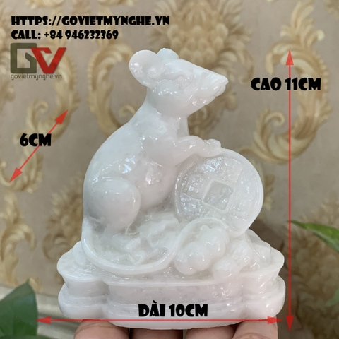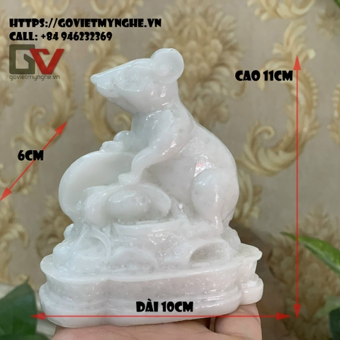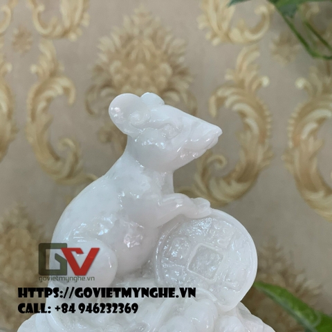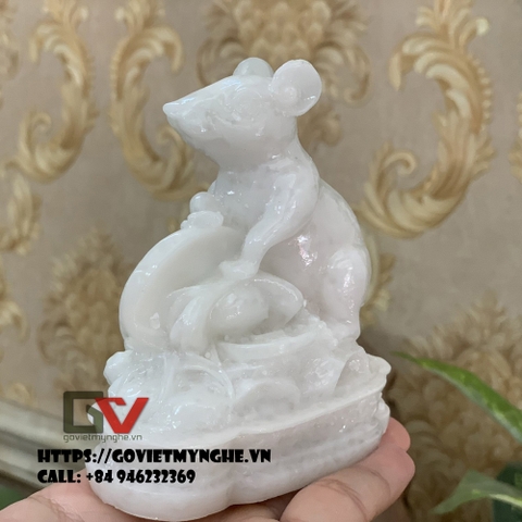 Tượng đá trang trí Chuột phong thủy ôm tài lộc - Chiều cao 11cm - Màu trắng đá non nước