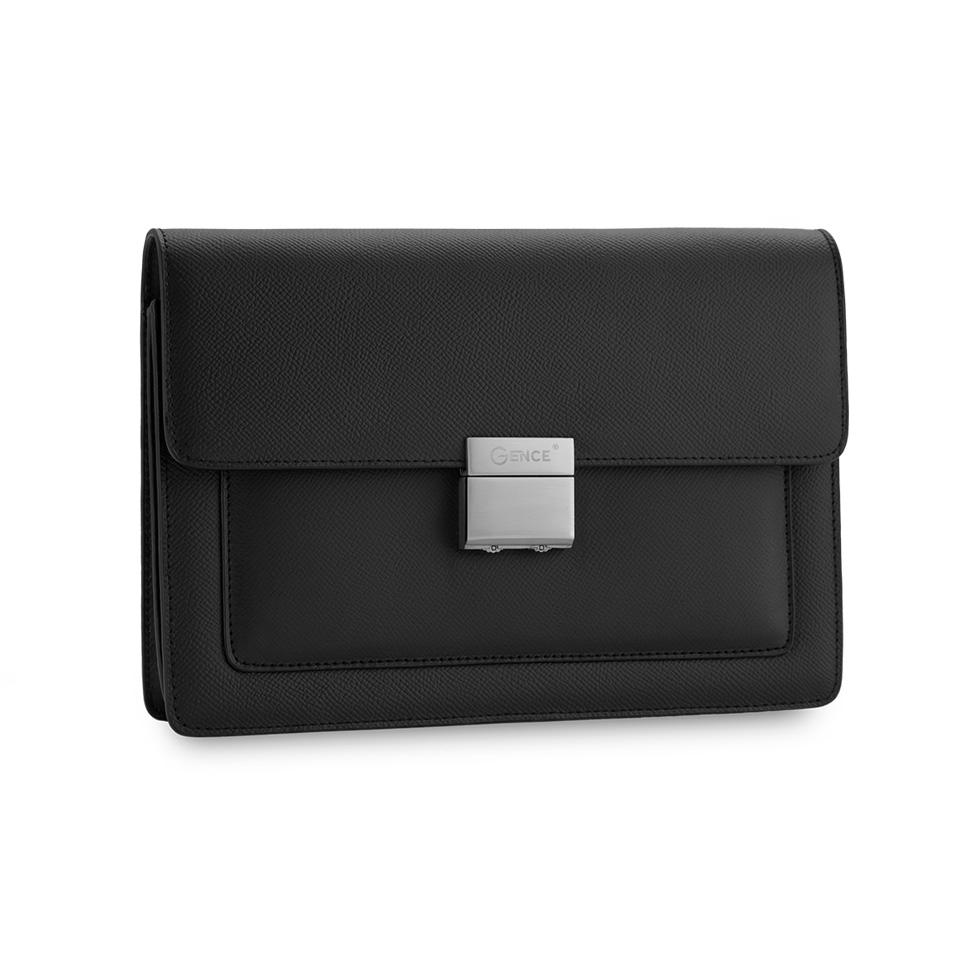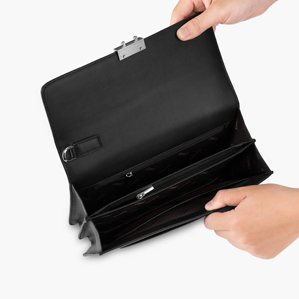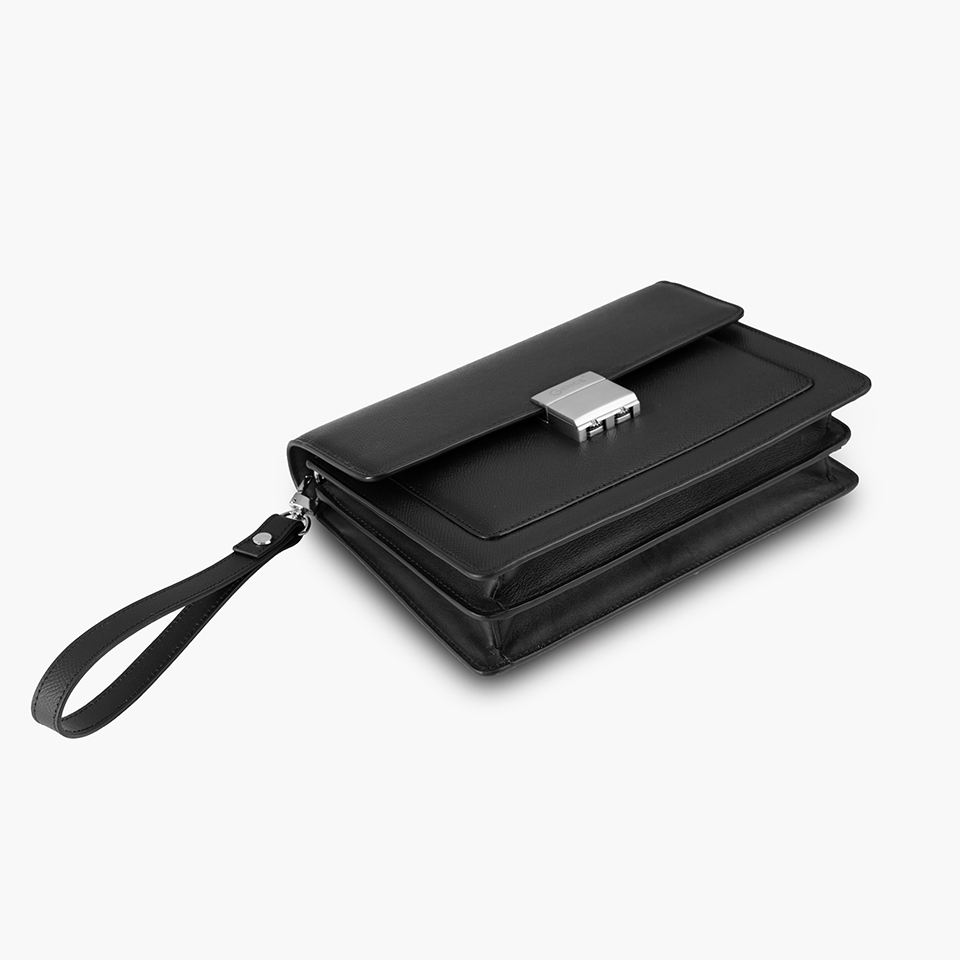 Clutch nam khóa số cao cấp da bò Epsom màu đen CK18