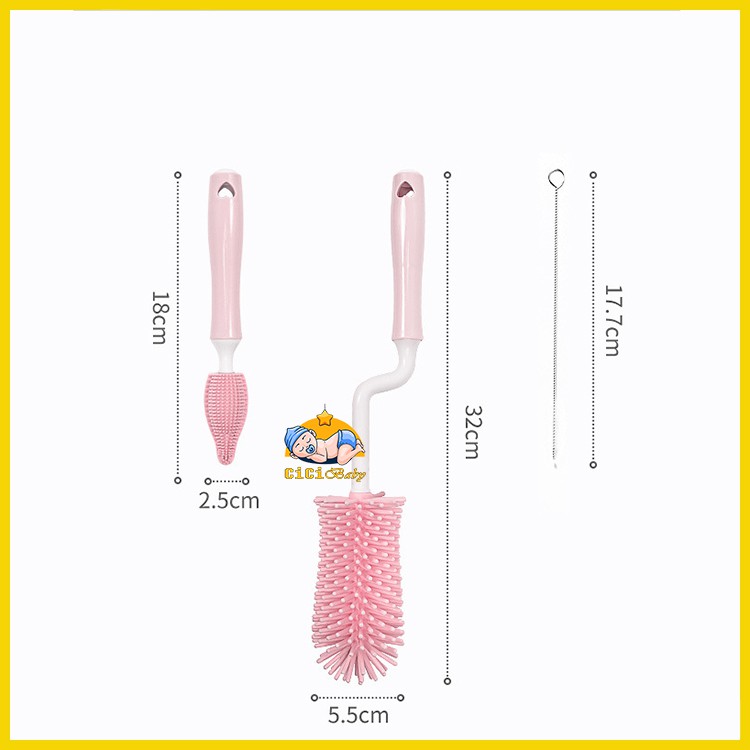 Mẹ & Bé > Đồ dùng ăn dặm cho bé > Bình sữa > Máy tiệt trùng bình sữa || Cọ bình sữa, cọ núm ti Silicon cao cấp gồm 3 chi tiết có tay cầm xoay 360 độ dùng cho mọi loại bình