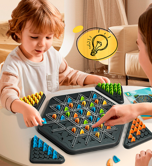 - Thành phần gồm: 1 bảng chơi, các quân cờ chia 4 màu, 4 đế tam giác đựng quân cờ, nhiều dây chun để buộc và 1 tờ luật hướng dẫn (bằng tiếng Anh và tiếng Trung)