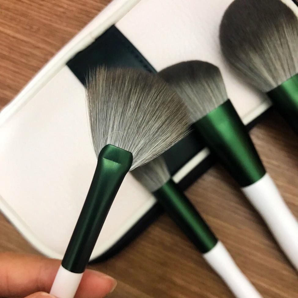 - Cán cọ gồm có 2 màu xanh trắng nhìn rất bắt mắt, bộ cọ đi kèm 1 cái túi da đựng sang trọng. Ngoài ra, cây cọ cầm rất chắc tay nhé các nàng, chất lông của cọ thì bắt phấn tốt, dày, mềm mịn và an toàn khi đánh lên da nhé!!!!!
