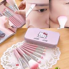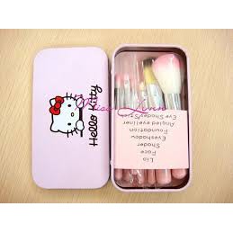 Giới thiệu Bộ cọ trang điểm hello kitty 7 món màu hồng kèm hộp đựng