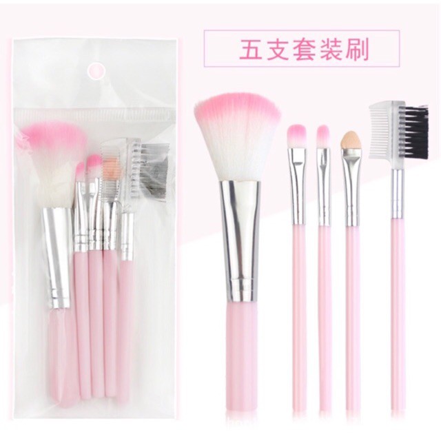 Bộ cọ trang điểm mini Hồng 5 chi tiết