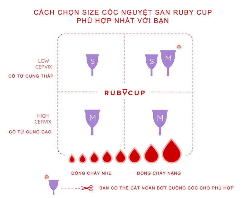 - Size S (dung tích 24 ml): Thích hợp cho các bạn gái trẻ, phụ nữ sinh mổ, người có âm đạo ngắn, lượng kinh nguyệt hàng tháng ít và trung bình; người mới lần đầu sử dụng cốc nguyệt san.