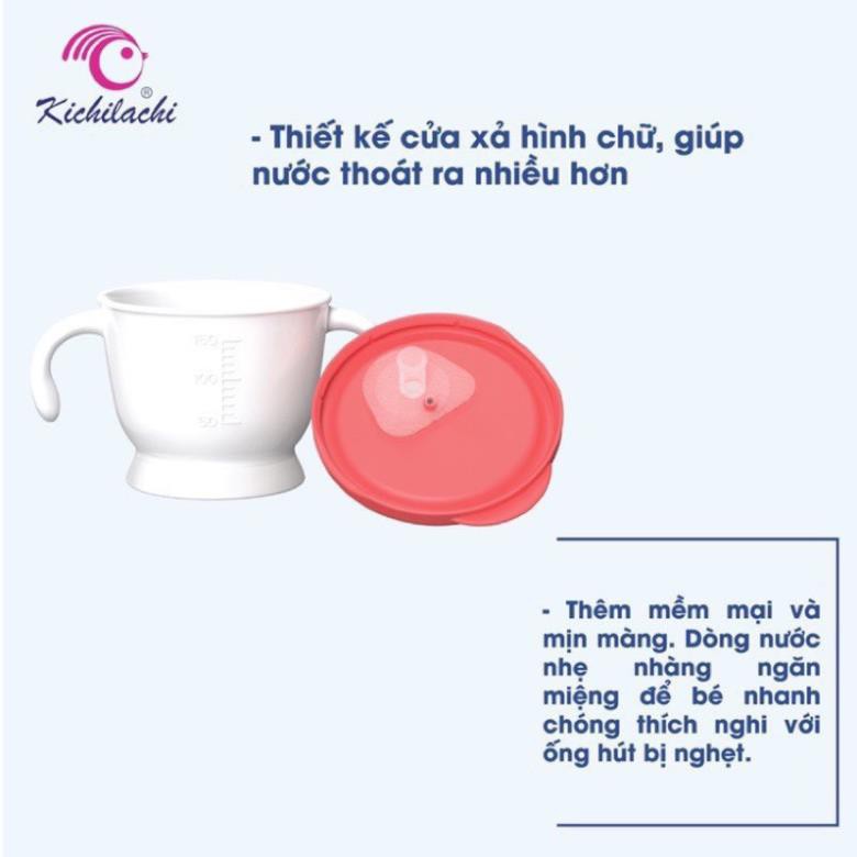 Ba giai đoạn giúp trẻ tập uống nước bằng Cốc tập uống 3 giai đoạn - Giai đoạn 1 (bé 4-6 tháng tuổi) : Đây là giai đoạn bé tập phản xạ hút : Bộ phận van đẩy nước chính là sáng chế độc đáo của Richell, mẹ chỉ cần nhấn vào nút PUSH trên nắp cốc để đẩy dòng nước trào nhẹ lên theo đường ống hút là bé có thể uống, điều này sẽ giúp tập cho bé phản xạ hút một cách nhanh chóng. Lưu ý: Nắp cốc phải kín. - Giai đoạn 2: (bé từ 6-9 tháng, bé dùng cốc ống hút): Thiết kế tay cầm 2 bên mảnh và uốn rộng, bé dễ dàng tự cầm để hút nước. Bé dùng cốc ống hút. Ống hút bằng silicone, chu vi hình elip vừa với khuôn miệng của bé, giúp bé uống dễ dàng và gọn gàng. - Giai đoạn 3 (bé 9 tháng tuổi, bé uống như cốc người lớn): Tháo nắp ra & bé dùng như cốc có 2 tay cầm.