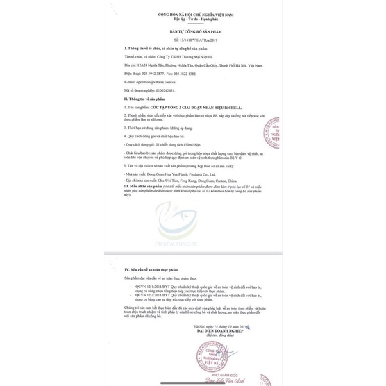 ️🏀 CỐC TẬP UỐNG NƯỚC CHO BÉ 3 GIAI ĐOẠN RICHELL CHÍNH HÃNG - NHẬT 💚 Xuất xứ: Nhật Bản ♥️ Đơn vị/ tổ chức chịu trách nhiệm sản phẩm: - Công ty TNHH TM&DV phân phối Ánh Dương - Địa chỉ: 81A Trần Quốc Toản, Hoàn Kiếm, HN