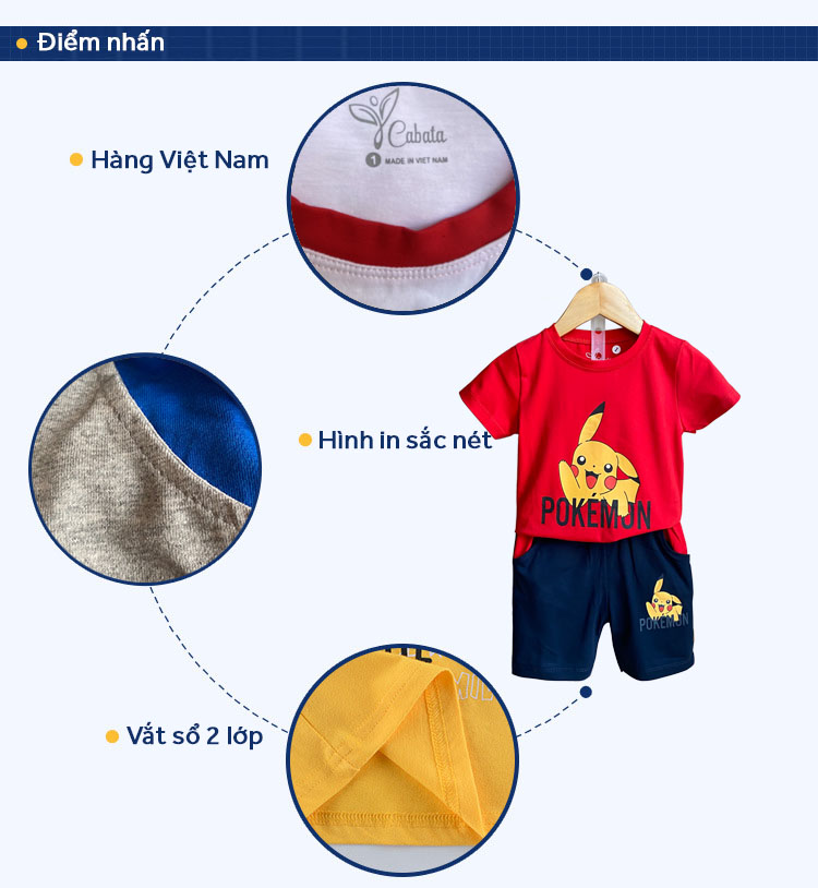 Giới thiệu Bộ Cộc Tay Bé Trai Mẫu Poke Ngộ Nghĩnh Vải Cotton Mềm Mịn Co Giãn 4 Chiều Quần Áo Trẻ Em Cabata Cho Bé 8kg 18kg