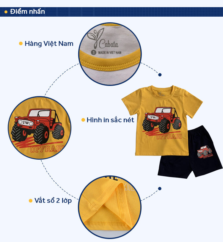 - Chất liệu: Bộ Cộc Tay Bé Trai được làm từ chất liệu thấm hút tốt là vải cotton đem đến cho bé sự dễ chịu khi mặc, và vẫn đảm bảo có thể bảo vệ tốt cho cơ thể, không gây kích ứng da khi mặc vào mùa hè.