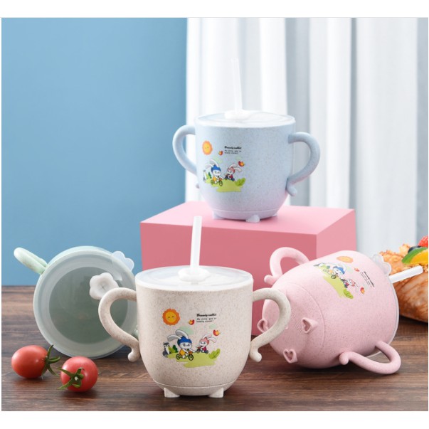 Mẹ & Bé > Đồ dùng ăn dặm cho bé > Đồ dùng cho bé > Ly, cốc cho bé || Cốc Uống Sữa, Nước Có Nắp Silicon Chống Đổ, Cốc Uống Sữa Có 2 Tai Cầm 270ml Bằng Lúa Mạch Sạch Sẽ, An Toàn