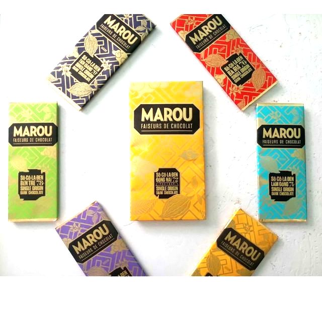 Để các b có thể thưởng thức thật nhiều hương vị của socola Marou. cửa hàng xin phép đưa ra các gói combo với giá cực kỳ ưu đãi như sau: 1/ 1 thanh Marou Bến Tre 78% cacao 80g + 1 thanh Maoru Bến Tre 78% cacao 24g 2.1 thanh Marou Bến Tre 78% cacao 80g + 1 thanh Marou Tiền Giang 70% cacao 24g 3/ 1 thanh Marou Bến Tre 78% cacao 80g + 1 thanh Marou Daklak 70% cacao 24g 4/ 1 thanh Marou Bến TRe 78% cacao 80g + 1 thanh Marou Đồng Nai 72% cacao 24g. 5/ 1 thanh Marou Bến Tre 78% cacao 80g + 1 thanh Marou Lâm Đồng 74% cacao 24g. 6/ 1 thanh Marou Bến Tre 78% cacao 80g + 1 thanh Marou Bà Rịa 76% cacao 24g. Các bạn có thể chọn gói combo trong phần phân loại sản phẩm lúc mua hàng. Các loại sôcôla của Marou được đặt tên theo từng vùng miền mà hạt cacao được trồng và lấy làm nguyên liệu sản xuất. 🚩 Socola đen Marou gồm 6 loại. Mỗi loại đều có hương vị đặc trưng riêng: Chocolate Đen Tiền Giang 70% cacao, Đak lak 70%, Đồng Nai 72% , Lâm Đồng 74%, Bà Rịa 76%, Bến tre 78% (Các bạn xem thông tin chi tiết trong hình nhé ^ ^) Vì mình lấy hàng ngay tại Xưởng sản xuất của Công ty nên các bạn yên tâm về chất lượng!