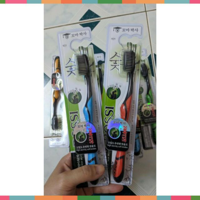 🍎🍎🍎BÀN CHẢI ĐÁNH RĂNG LÀM TỪ THAN HOẠT TÍNH BOSSI HÀN QUỐC 921 Model : No 921 Thương hiệu : Bossi Hàn Quốc Chất liệu : Thân nhựa PP, lông bàn chải chất liệu than hoạt tính Kích thước dài : 19cm Kích thước mặt chải : 3 x 1.5cm Kích thước lông bàn chải dài : 1.2cm Màu sắc : Xanh lá, xnah biển, cam hoặc đỏ. Lông 2 sợi đen và trắng Nhiệt độ chịu tới 80oC Đặc điểm nổi bật - Cấu trúc lông bàn chải 2 tầng (sợi tròn đen & sợi chỉ tơ trắng) giúp chải răng sạch hơn, Massage nướu, loại bỏ mảng bám cứng đầu. - Làm sạch tận sâu bên trong răng mà không làm tổn thương nướu, răng - Thân bàn chải lượn sóng giúp chải sạch toàn diện đến tận răng trong cùng - Sử dụng công nghệ Nano với các siêu phân tử than hoạt tính phủ trên lông bàn chải giúp tiêu diệt, ngăn chặn sự sinh sôi, xâm nhập của vi khuẩn, khử mùi hôi, ngăn ngừa bệnh răng miệng.