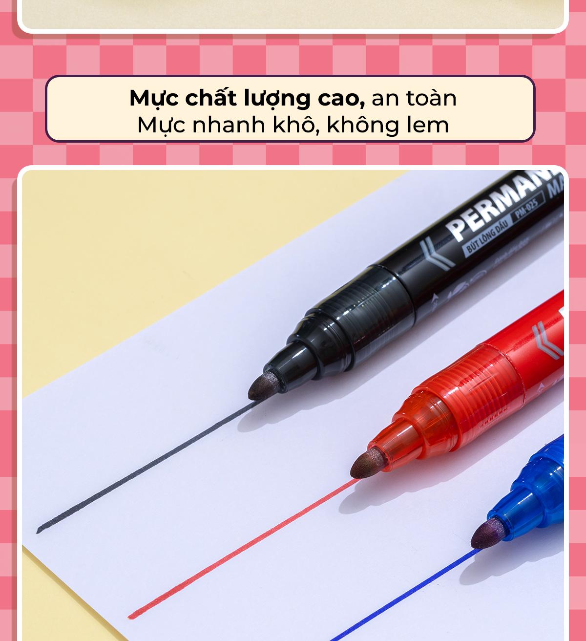 - Màu mực đậm tươi, mực ra đều và liên tục.