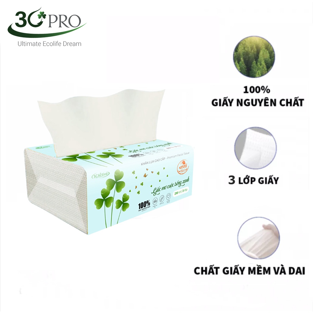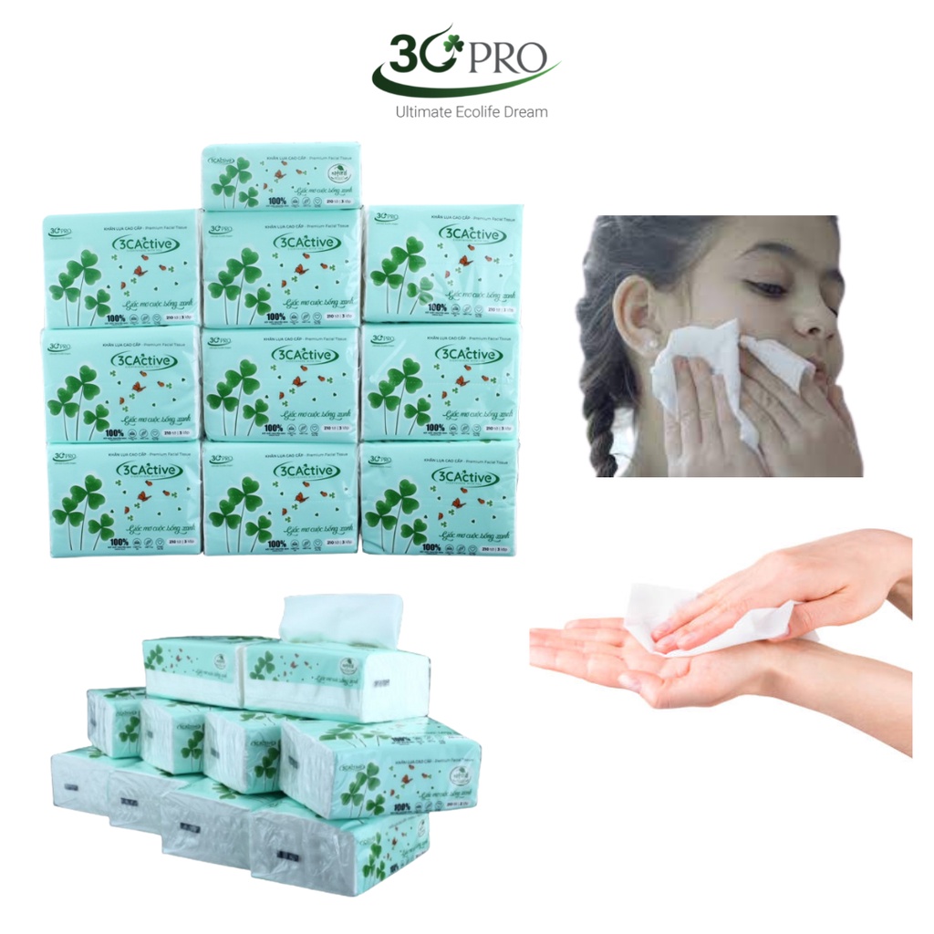Nhà cửa & Đời sống > Dụng cụ chăm sóc nhà cửa > Khăn giấy, giấy ướt || COMBO 10 gói Giấy rút lụa mini cao cấp 3C Active, 100% bột giấy nguyên sinh, 3 lớp siêu mềm, siêu dai
