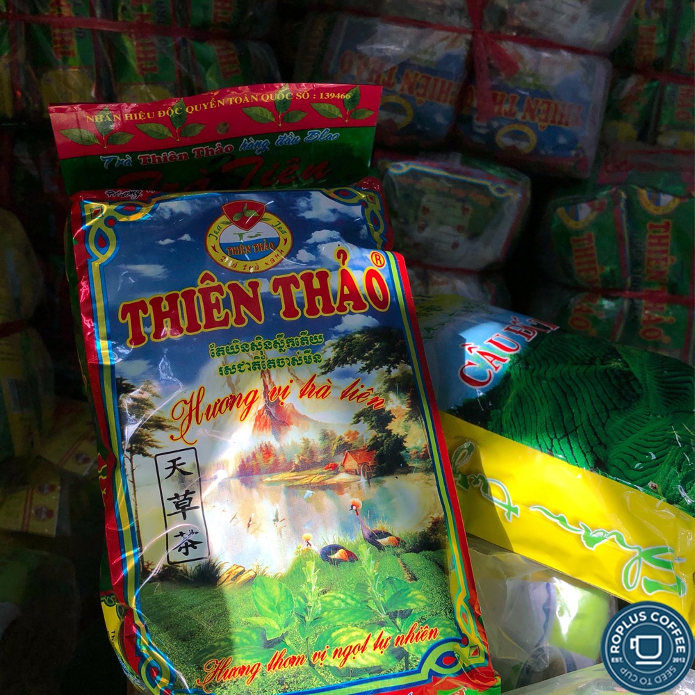 ĐẶC ĐIỂM nổi bật của các loại trà Thiên Thảo - Màu nước đẹp: Được sàng lọc từ các búp trà tươi non nên khi pha trà với đá, trà có màu xanh tự nhiên rất đẹp. - Hương vị đậm đà: Sản phẩm có hương vị rất đặc trưng tự nhiên: thơm dịu tinh khiết, chắt lọc tinh hoa của thiên nhiên. - Pha nhiều lần mới nhạt: Trà Thiên Thảo từ lâu đã nổi tiếng thơm ngon, nước pha đậm đà, 3-4 nước mới nhạt nên rất tiết kiệm cho các chủ quán. - Trà được đóng túi nhôm hút chân không nên bảo quản được lâu, giữ hương vị, tránh ẩm mốc. - Hạn sử dụng : 24 tháng kể từ ngày sản xuất