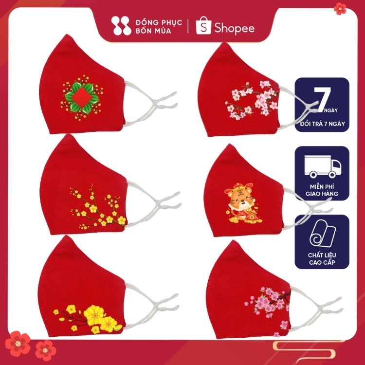 Quần áo mới xúng xính ngày Tết sao có thể thiếu Khẩu Trang?? Đồng phục bốn mùa đã ra mắt phiên bản khẩu trang tết với nhiều họa tiết bắt mắt, hoa đào, hoa mai, thần tài...để chúc mừng năm mới. Khẩu Trang Họa Tiết Năm Mới với màu đỏ vàng đặc trưng sắc Tết 2022 để mọi người vẫn có thể vừa bảo vệ bản thân an toàn, vừa thời trang để lưu lại khoảnh khắc Tết bên gia đình và bạn bè nè. Kiểu dáng mẫu mã khách xem hình và chọn giúp em nha. Sp thật y chang như hình luôn ạ, màu siêu đẹp siêu nét. Khách yên tâm ạ. KHẨU TRANG IN THEO YÊU CẦU – 3 LỚP KHÁNG KHUẨN ✅ Ngăn ngừa vi khuẩn, bụi bẩn, bảo vệ sực khỏe ✅ Tái sử dụng trên 30 lần giặt ✅ Mẫu mã đẹp, bắt mắt, tinh tế CÔNG DỤNG VÀ ƯU ĐIỂM: • Khác biệt: đeo êm hơn, dây đeo thoải mái hơn • Tai đeo có độ đàn hồi cao, ít tạo áp lực lên tai và mặt, tránh gây khó chịu khi sử dụng trong thời gian dài. • Thiết kế thông minh có nẹp mũi dạng ấn có thể giúp ôm khít sống mũi, giảm sương mù trên kính mắt. • Thoáng khí, thoát ẩm với lớp lọc có thể ngăn chặn tốt hơn các hạt nhỏ trong không khí và lọc nó, giảm cảm giác ẩm ướt khi đeo khẩu trang. --------------------- KHẨU TRANG 3 LỚP – AN TÂM SỬ DỤNG ▪️ Lớp trong cùng: Vải mè lỗ thoáng khí, không bít bí, dễ chịu dù đeo suốt ngày dài ▪️ Lớp giữa: Vải lót chuyên dụng giúp khẩu trang luôn đứng dáng dù giặt nhiều lần ▪️ Lớp ngoài linh hoạt có thể sử dụng nhiều loại vải như: mè lỗ thoáng khi đáng úng mọi nhu cầu về chi phí, màu sắc, tính chất sử dụng… ▪️ Thiết kế vừa vặn ôm sát khuôn mặt, không gây bí thở ▪️ Đặc biệt, dây chun nhập khẩu với khả năng co giãn tốt, không gây đau tai với nút điều chỉnh theo kích cỡ khuôn mặt. ▪️ Giặt được nhiều lần ▪️ Màu sắc đa dạng, thoải mái lựa chọn ▪️ In ấn theo yêu cầu, logo sắc nét, chuẩn màu thương hiệu - Kháng khuẩn - Ngăn bụi - ngăn chặn dịch tiết từ người bệnh ▪️ #Freeship toàn quốc ☎ Hãy #INBOX ngay cho chúng tôi để nhận tư vấn và đặt hàng nhanh nhất! ------------------------------------