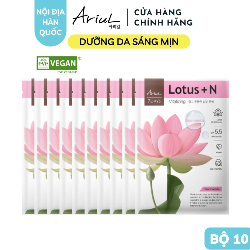 Combo 10 mặt nạ ARIUL 7 DAYS Hoa Sen + Niacinamide 23ml - Giúp da sáng mịn và đầy sức sống