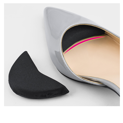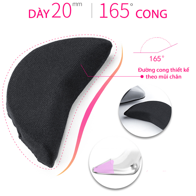 Công dụng: lót giày nữ lắp đầy khoảng trống ở mũi giày bít, làm lớp đệm cho các ngón chân không bị đau khi mang giày cao gót bị dồn chân về phái trước. Miếng lót giúp các móng chân không tiếp xúc trực tiếp với lòng trong của giày nên không còn bị đau thốn móng chân. Thiết kế mũi mác với độ cong 165* phù hợp với cấu trúc mũi chân nên rất dễ mang và phù hợp với hầu hết mọi mũi giày bít.
