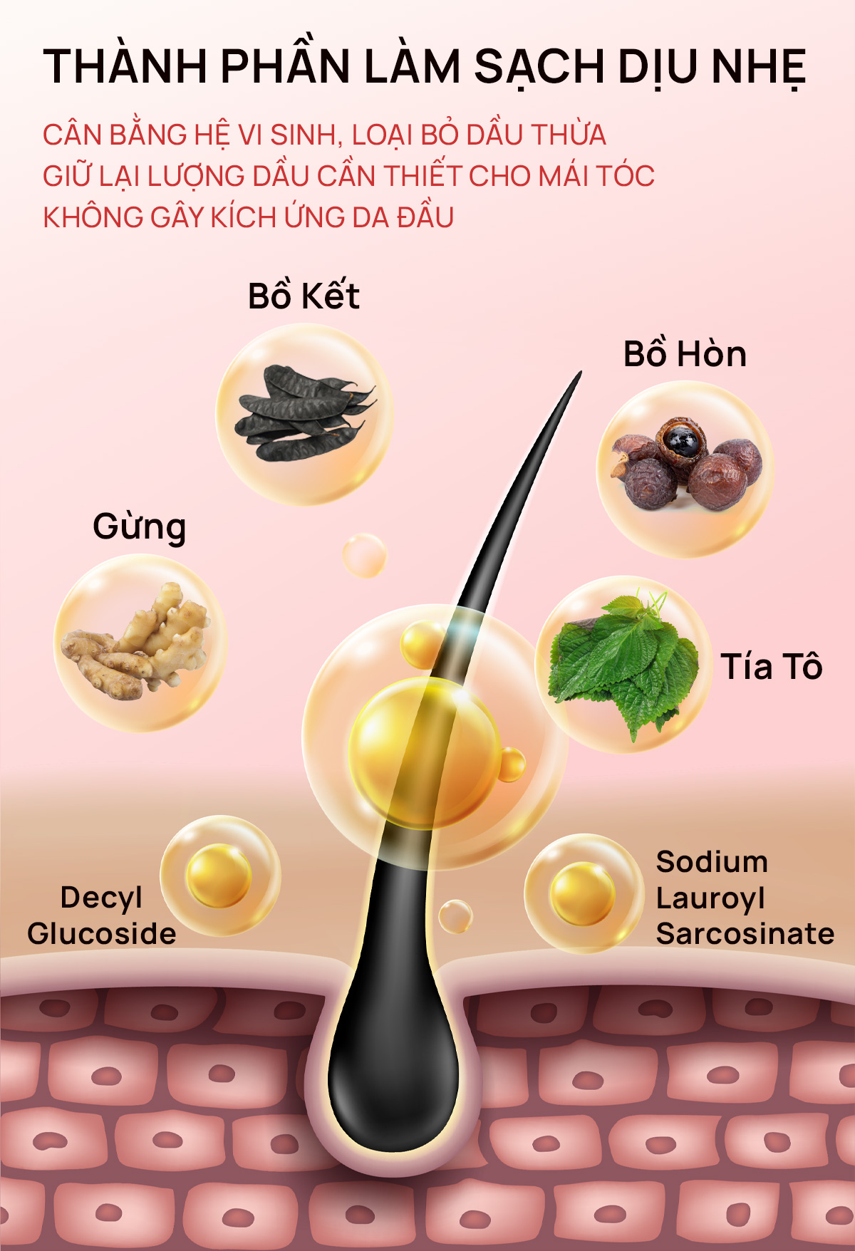 Làm sạch đầu và tóc, giảm gàu, dịu da đầu tránh kích ứng gây ngứa da đầu.