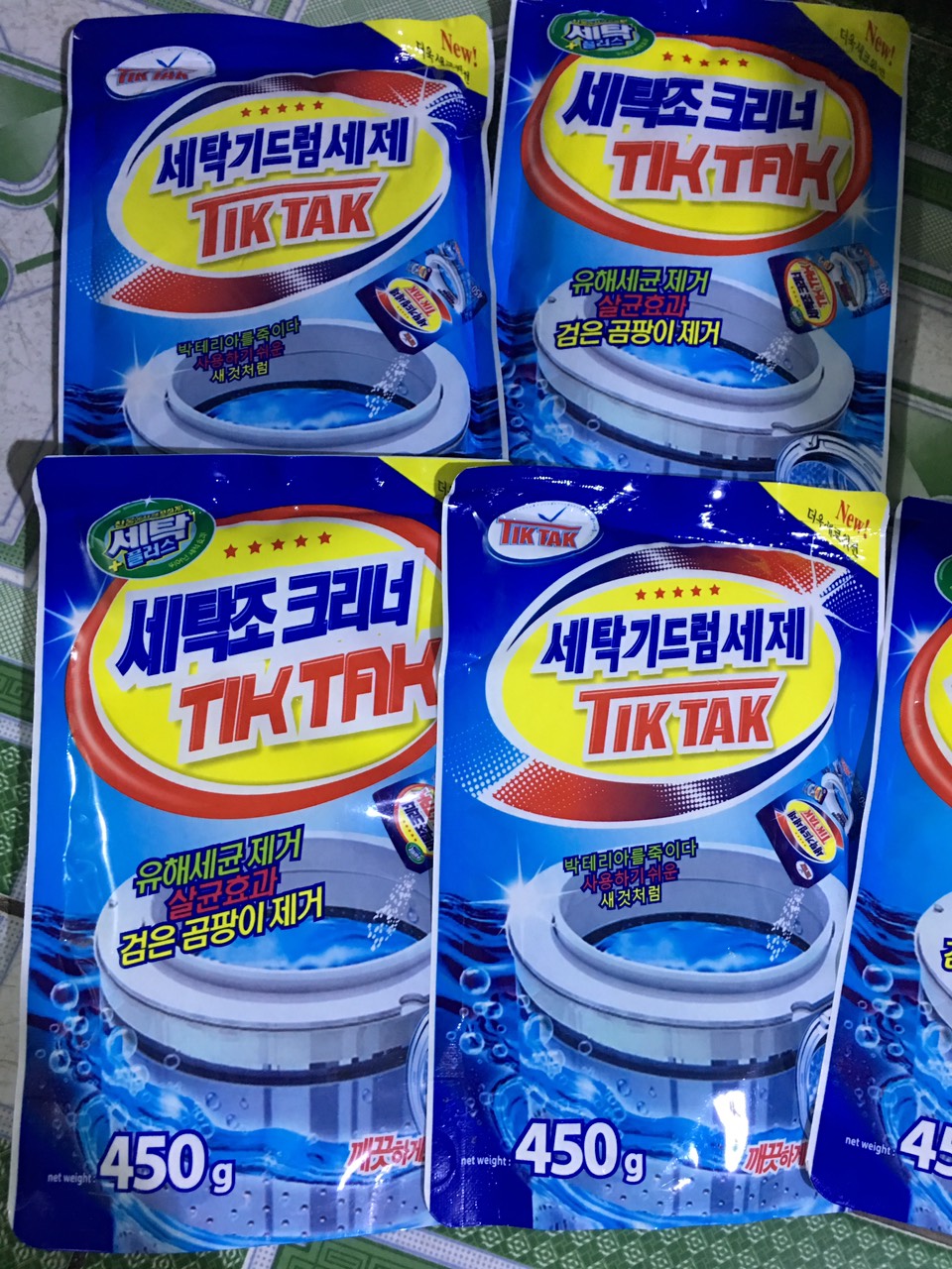 - 1 gói 450gr sử dụng cho 1 lần vệ sinh với máy giặt từ 7kg ~ 12kg. Máy giặt to hơn thì dùng 2 gói.