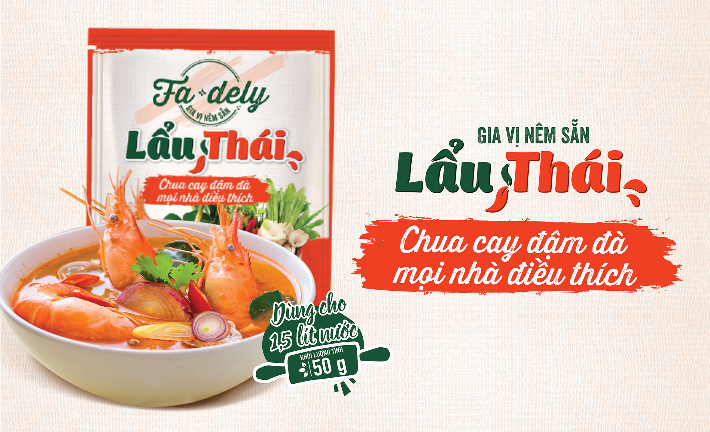 Dù cuộc sống muôn bề bận rộn nhưng chúng ta cũng không thể qua loa với bữa ăn của bản thân cũng như của gia đình. Hiểu được sự vất vả của những người nội trợ, Tinh Nguyên mang đến sản phẩm Gia vị nêm sẵn Lẩu Thái Fadely vừa nhanh chóng và tiện lợi nhưng vẫn đảm bảo một nồi lẩu hoàn hảo cho mọi thời điểm sum vầy.